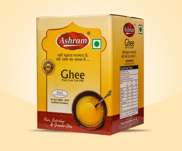 "Ashram" Offered Pure Cow Ghee is widely demanded in homes, hotels and restaurants for preparing delicious dishes. It is packed with essential vitamins and minerals that are required by your body for proper functioning. This ghee is processed using pure buffalo milk procured from reliable market vendors. Both hygienic and ethical practice of rearing the cattle are employed while producing ghee. also available in Jar Packing, Tin Packing, Pouch Packing & Box Packing.