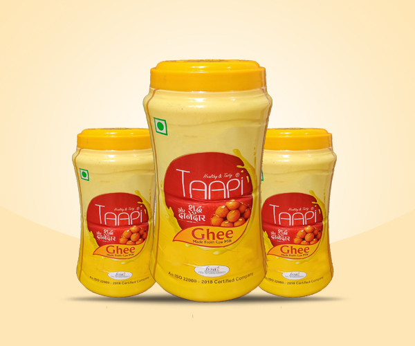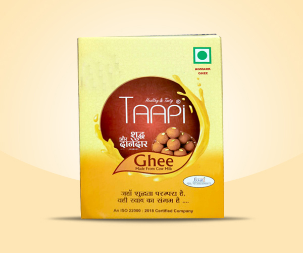 "Tapi" COW GHEE is sourced from the healthy grass feeding cows in order to ensure its high quality standards. NO CHEMICALS, NO PESTICIDES, NO HOROMONAL INJECTION used on cows and fodder. It is associated with many health benefits. also available in Jar Packing, Tin Packing, Pouch Packing & Box Packing.